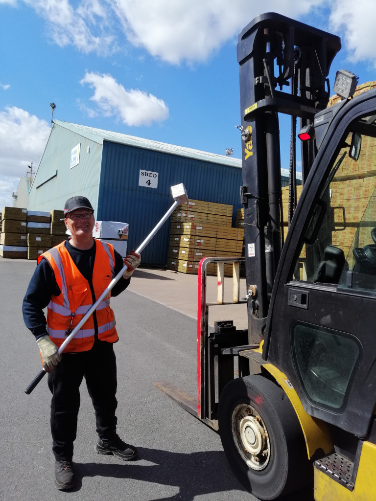 ‘Dunnage placement tool’ that holds dunnage at exactly the right angle at the end of a lightweight pole, enabling dunnage to be positioned exactly where needed with precision and ease.